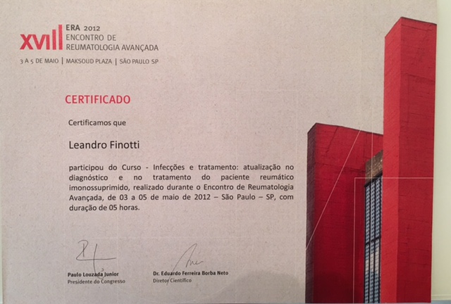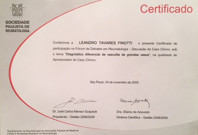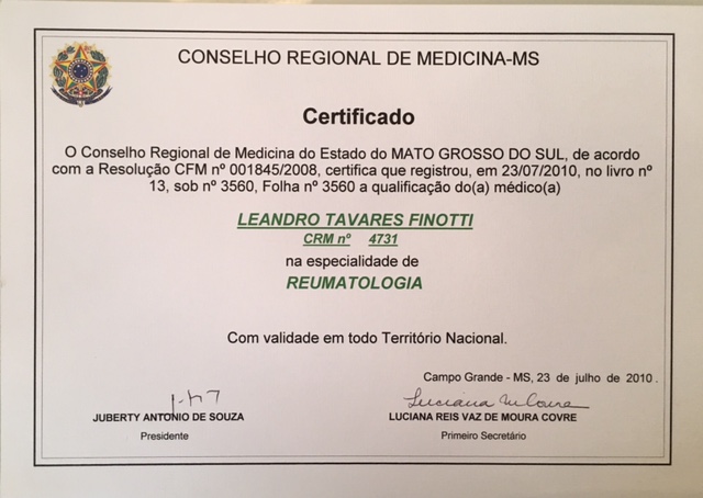 Especialista em Reumatologia pela Sociedade Brasileira de Reumatologia / Associação Médica Brasileira (SBR /AMB).