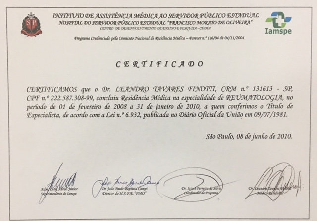 Residência Médica em Reumatologia no Hospital do Servidor Público Estadual de São Paulo Francisco Morato de Oliveira (HSPE - FMO).